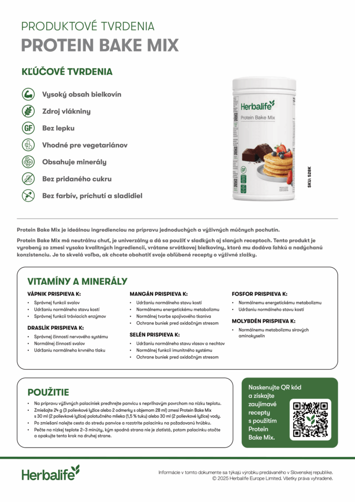 Vďaka neutrálnej chuti sa ľahko zapojí do vašich obľúbených receptov a premení vaše výtvory na pečené dobroty s vyšším obsahom bielkovín. Od sušienok po muffiny a od lievancov po wafle – Herbalife Protein Bake Mix ponúka nekonečné možnosti.